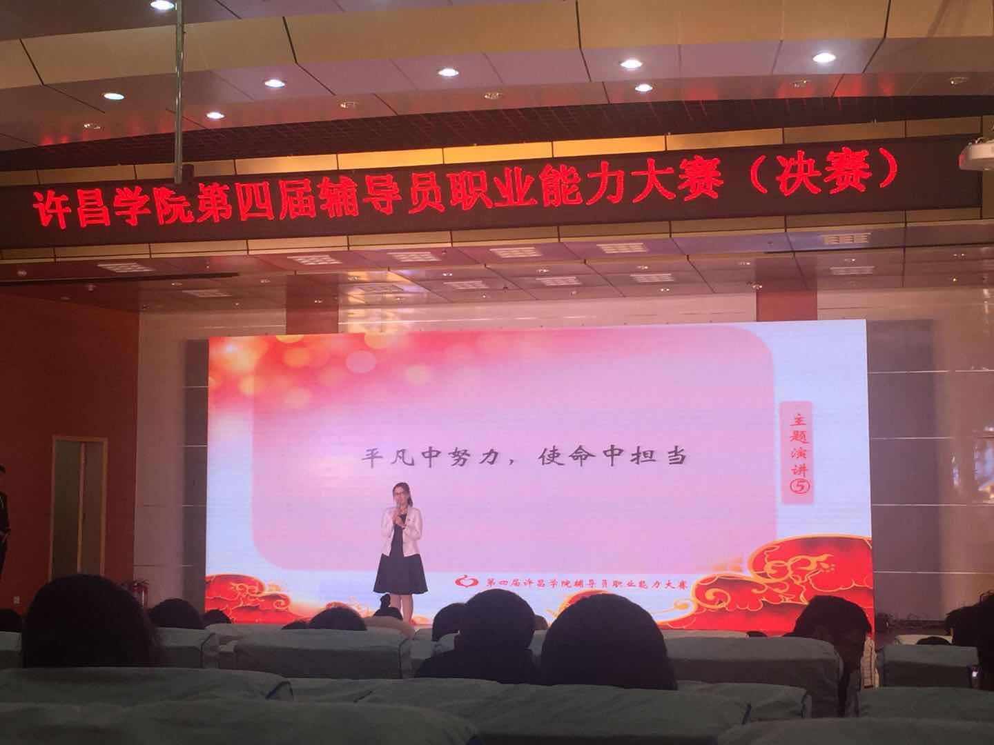 2017年12月14日下午,第四届辅导员职业能力大赛决赛在学术报告厅举行。校党委副书记孙海出席比赛现场,各学院党总支书记、副书记、全体辅导员及学生代表300余人一同观看了比赛。经过初赛、复赛、决赛三个阶段的激烈角逐,我院辅导员平志惠老师凭借扎实的理论基础和丰富的实践经验,表现优异,斩获桂冠,我院喜获优秀组织单位。