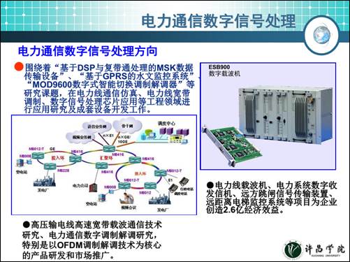 电力通信数字信号处理研究方向主要从事电力线通信仿真、电力线宽带调制、数字信号处理芯片应用等工程领域的应用研究及成套设备开发工作。包括高压输电线高速宽带载波通信技术研究、电力通信数字调制解调研究,特别是以OFDM调制解调技术为核心的产品研发和市场推广,保证电力系统运行平稳。