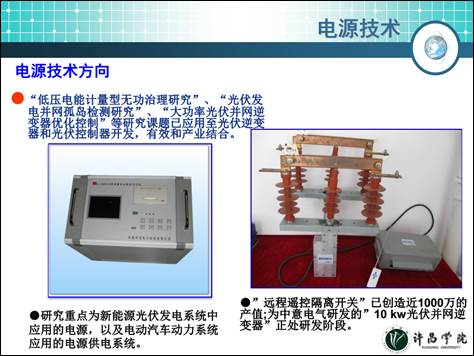 电源技术方向研究的主要内容包括新能源光伏发电系统中应用电源、微电网系统能量调节以及电动汽车动力系统应用的电源供电系统。这些领域内的电源技术发展一方面适应经济发展的趋势,同时与地方经济发展特别是许继集团的发展结合非常紧密。目前许继集团在该领域的投入力度非常大,已经成立电动汽车充电站有限公司以及微电网技术有限公司。通过与许继合作,一方面可以把研究的内容很快转换成产品投入到市场,同时能够借助许继的生产和实验设备,减少产品开发成本。