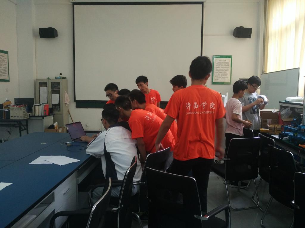 7月9日,许昌学院“创新天地,放飞梦想”创新社会实践队的队员们开始对机器人的传感器进行调试工作。
